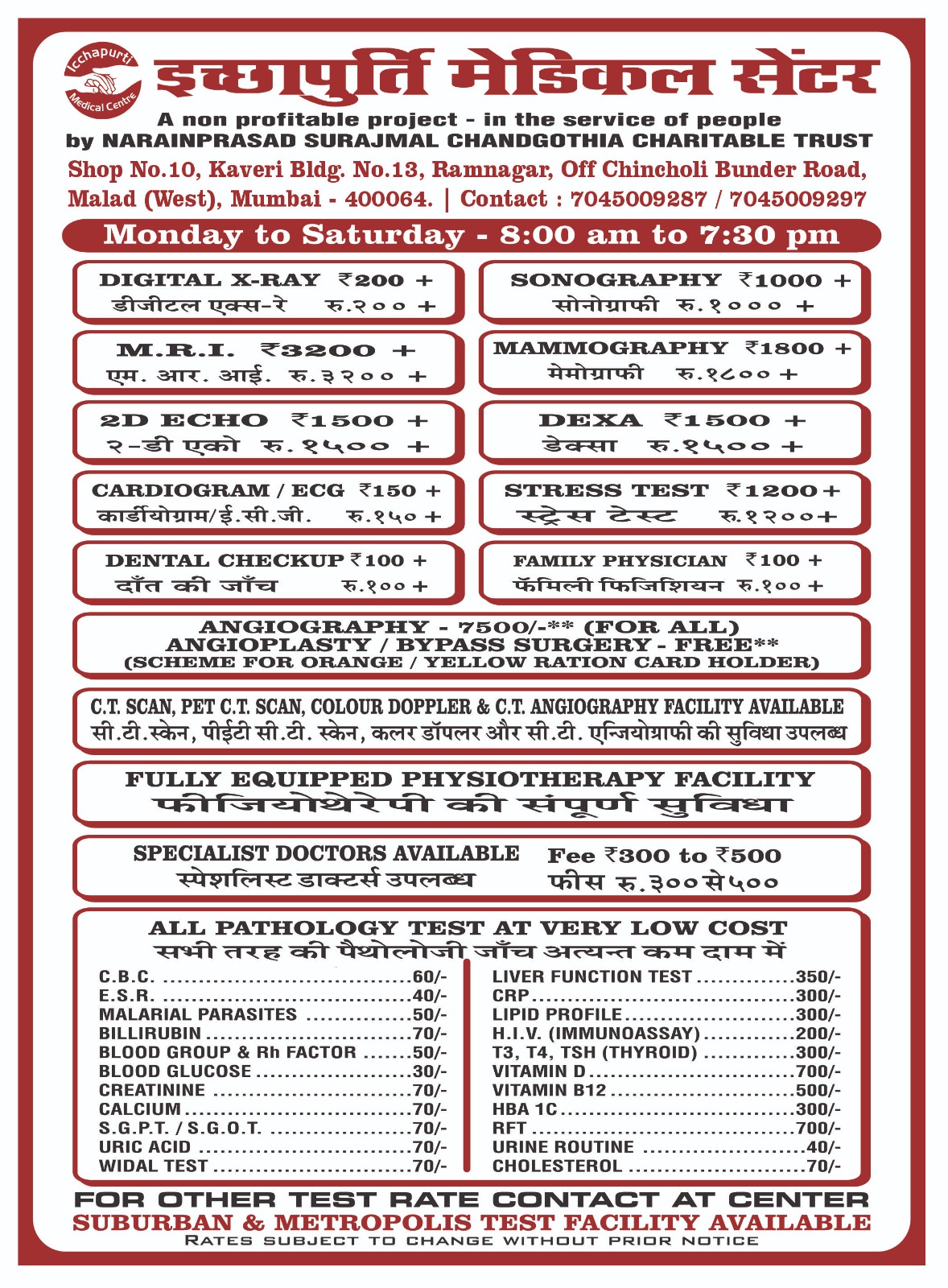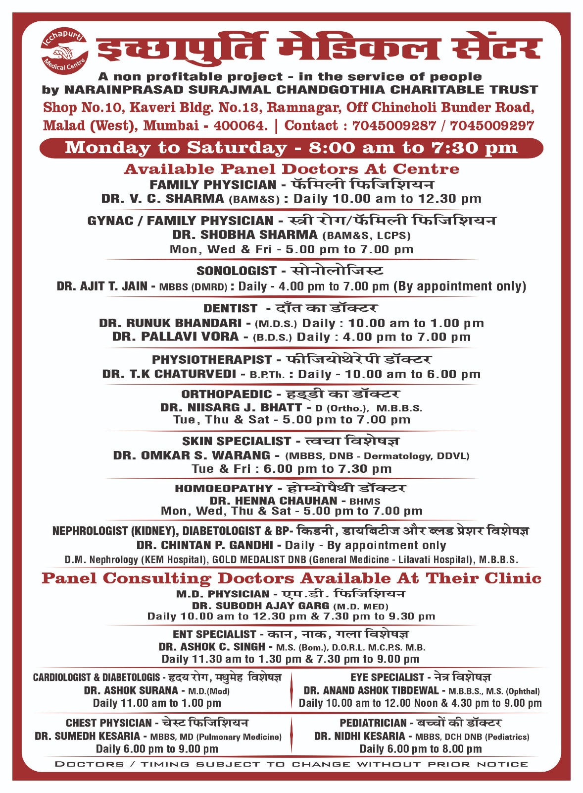 Ichapurti Medical Centre, Malad was honoured with the "Best Charitable Medical Centre" award at the 8th Navbharat Healthcare Summit, held at Hotel Taj President, Mumbai.